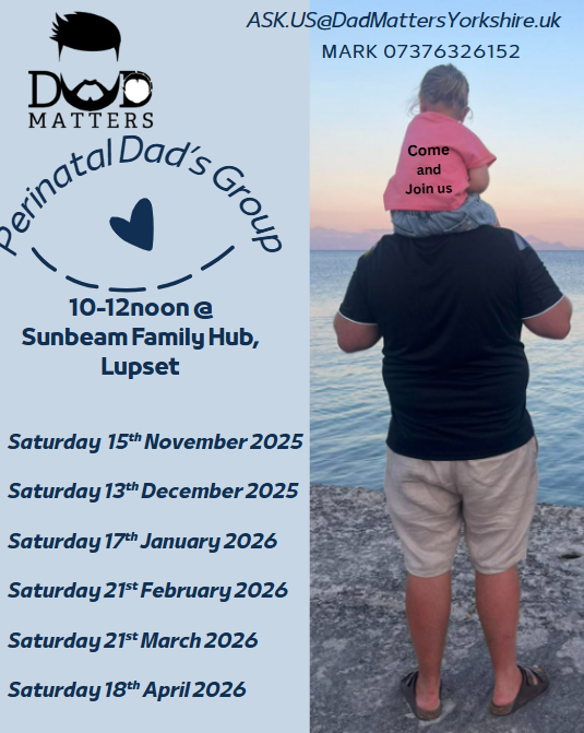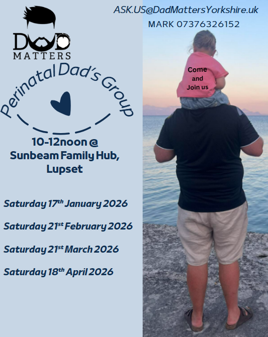 Dad Matters Wakefield & District’s 1 to 1 offer is to give dads peer to peer support with the aim to assist them with emotional support, and to signpost them to the relevant services to help them with issues ranging from parental skills to their mental health and well-being